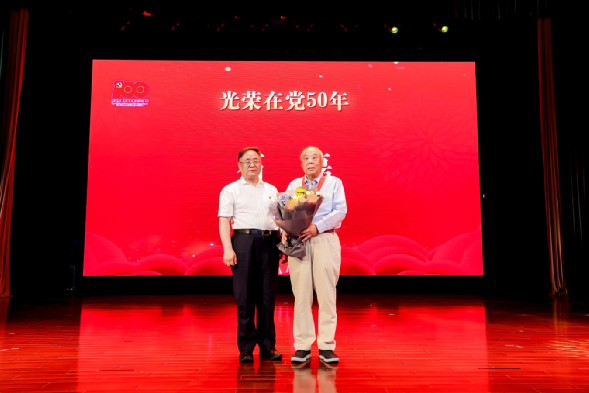 大會隆重舉行了“光榮在黨50年”紀念章頒發(fā)儀式,集團黨委書記、董事長卜玉龍為集團老領導、老黨員石磊頒發(fā)并佩戴紀念章,向他致以崇高的敬意,感謝他為中智集團作出的積極貢獻。