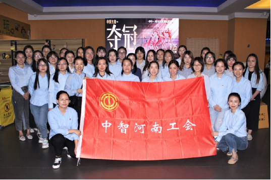 中智河南員工在影院與工會(huì)旗合影